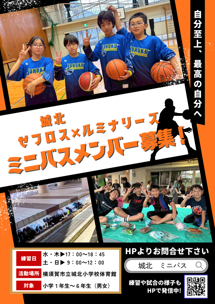 | 注意事項 | 城北小学校の体育館にて活動しておりますが、城北学区以外のメンバーも在籍しております! ミニバスケットボールの活動において学区の隔がなくなりましたので、お気軽にお問い合わせください! また、他のミニバスチームに在籍(地域チームの場合も)していた場合もお気軽にご相談ください! |